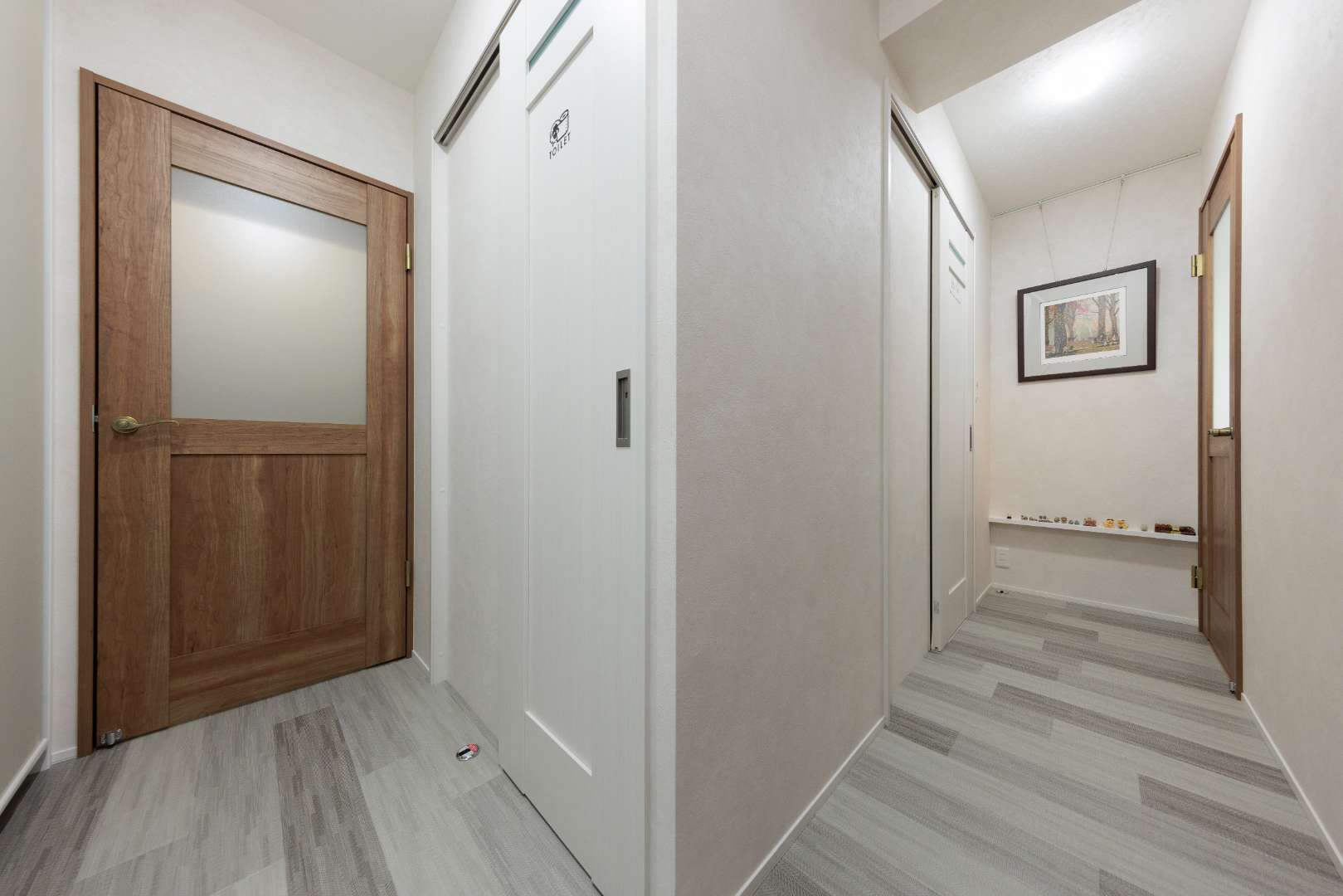 正面にはお気に入りのアートを飾るスペースを設け、視線の先に小さな楽しみが生まれるよう工夫。